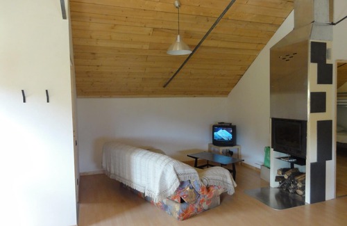 The apartment is new, chalet type with 2 independent bedrooms (1 140.3 x 90 cm bed), living room with sofa bed, kitchen area, washing machine, TV, shower room, WC.
