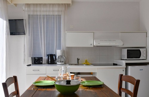 • Kitchenette: fridge, electric hob, microwave, dishwasher, filter coffee maker, kettle, toaster