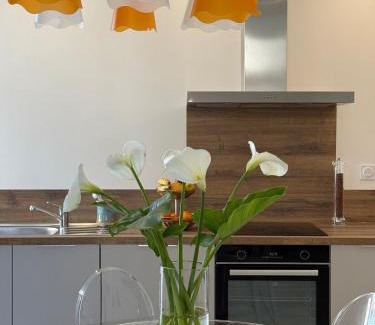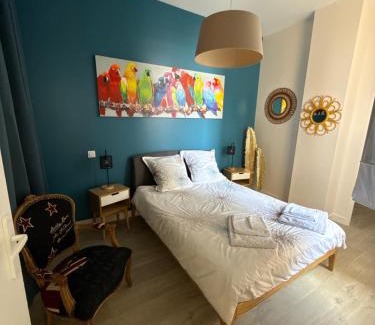 A comfortable apartment within the vicinity of Plage Centrale, T3 en RDC avec jardin et 1 place de parking offers a base for a hassle-free getaway in Soulac-sur-Mer. The property features a private beach area, private parking, and free Wifi to ensure guests have a well-rounded experience during their stay. 5.9 miles from Gironde Estuary and a few steps from Notre-Dame de la Fin des Terres Basilica, the property provides a garden and a terrace. Outdoor seating is also available at the apartment. T3 en RDC avec jardin et 1 place de parking features 1 bedroom, a fully equipped kitchen with a dishwasher and an oven, a washing machine, and 1 bathroom with a hair dryer. A flat-screen TV is available. For added privacy, the accommodation features a private entrance. La Rochelle - Île de Ré Airport is 60 miles from the property.