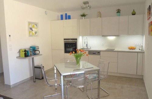 - Kitchen: large fridge - freezer, oven, microwave, dishwasher, hood, induction hob, washer-dryer, kettle, coffee maker, toaster, Nespresso® coffee machine, dishes and utensils in quantity and quality.