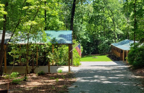 Charming cabin nestled into the foothill mountains of upstate South Carolina. Located at less than 3 miles from Table Rock State park , this cozy getaway has everything you need to enjoy your time away from home! The scenic lot offers and abundance of nature and privacy, as well as an outdoor fireplace, hot tub outdoor seating, a putting green, grill, and RV parking. Inside you will find a full kitchen, washer & dryer, queen sleeper sofa. Come and experience our little slice of heaven!