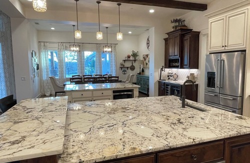 Picturesque paradise perfect for families, reunions, getaways, corporate retreats, weddings or events! 20 foot vaulted, beam ceilings and this open floor plan offers effortless entertaining. Featuring: Gourmet Chefs kitchens, pantry and large laundry. 5 spacious bedrooms, each with en-suites for added privacy; plus two 1/2 baths, one with access to the outside pool and lanai. Also features, two bonus rooms currently set up as extra sleeping and a private, spacious office for those professionals needing to work remotely. The primary suite is over 1000 sq. feet and is ideal for a bride and bridal party featuring a spa like en-suite, walk in closet and sitting areas, all with an abundance of natural light, outlets, and a dedicated custom make-up table with lighted mirror. Outside boasts a fire-pit, magnificent, covered lanai with ceiling fans, a sparkling in-ground salt-water pool and a secondary mini pool. All set on a private 215 acre ranch, atop Table Mountain and all its seasonal natural glory. The house and property offers 360 degree mountain and valley views with unparalleled sunrise and sunsets. And if that weren’t enough, this estate borders the nature preserve and majestic Phantom Falls Waterfall. This stunning home and property are available for weekend respite, grand events and upon approval, long term rentals. **For events with more than 13 guests and for all weddings; Contact VRBO host for event details @ 530-521-4598 and/or mlboeger@gmail.com