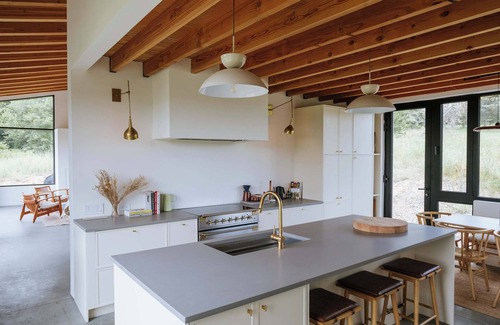 Perfect for remote work or a weekend escape, Taghkanic House is a light filled passive home offering a serene experience immersed in nature in the heart of the Hudson Valley.