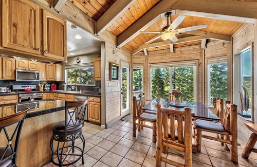 Double the Pleasure in this updated 4,000+ Sq Ft Hawaiian themed Tahoe Home: TWO Kitchens, TWO dining rooms, bar areas, TWO open concept great rooms, 4 bathrooms (two of which are En suite Jack-N-Jills with a shared tub shower in the middle), 6 decks, fenced back yard, 2 wood stoves, game room, fitness equipment- - and that is just the start!