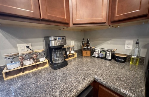 • Modern Kitchen: Fully stocked with everything you need, plus a coffee bar featuring locally roasted beans.