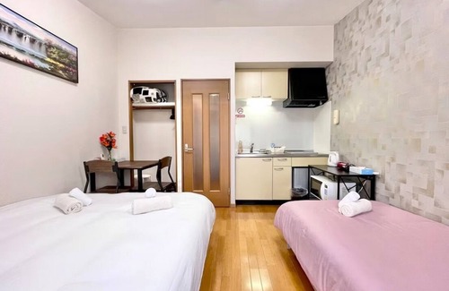 - New!편의점10초#신주쿠2분#신오쿠보역5분#12평#최대3명#부엌침실#나리타공항50분#러블리아파트#고급매트리스