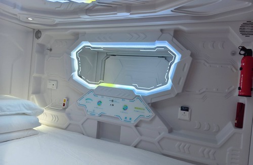 Capsule hotel connected to the airport in Chengdu with a 24-hour front desk
