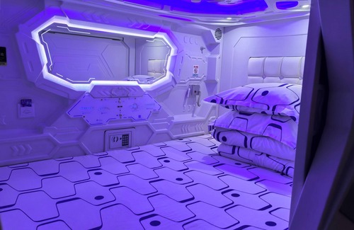 Capsule hotel connected to the airport in Xianyang with a 24-hour front desk