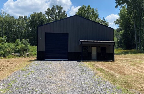 The cabin offers an attached 56' enclosed garage with roll door. This cabin features 2 cozy bedrooms - one with two sets of bunk beds and the other with a king bed. . The bathroom offers a refreshing walk-in tile shower for a terrific start to the day or relaxing end of the day refresher. A full laundry room and kitchen allow for a more home type feeling as you can keep items clean, or cook your favorite meal. Enjoy your time in Scottsboro at our cabin.