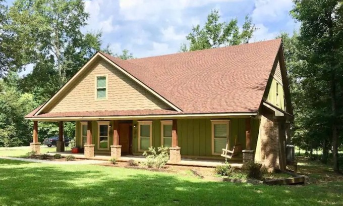 This beautiful home is nestled in the middle of a 9 acre property with oaks and natural surrounding. With it's rustic décor, spacious 5 bedrooms and relaxing back porch. This 3600 sq ft home is perfect for work or vacation. Large master, walk-in shower, and pool table upstairs. The town of Fairhope is a brief 10 minute drive. also minutes away from Tryon sport park, 40 minutes to the beaches of Gulf Shores and brief ride to the interstate.