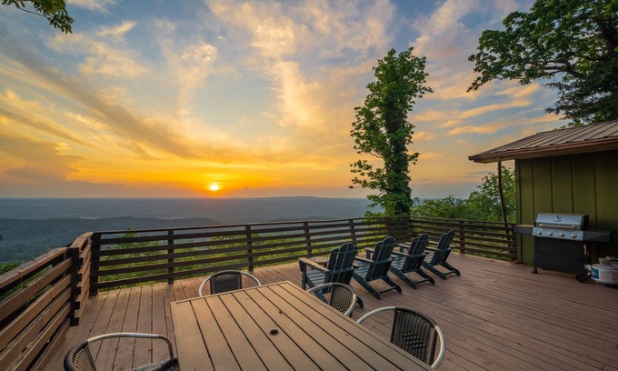 Talking Leaves Cottage, perched on the brow of Lookout Mountain in Alabama and situated on Scenic Highway in Mentone, was built in 1955 and is a uniquely-designed, spacious one-level home. There is a no-stairs front entrance into one of the family bedrooms, so this home offers effortless access to breathtaking brow views. The spacious living, dining and deck areas offer the perfect family gathering spaces, and the three large family rooms, with multiple beds and a large Roku TV in each room, invite rest and relaxation at the end of each day.