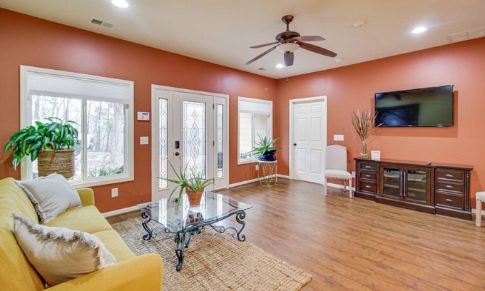 Bask in the beauty of Georgia’s mountains when you stay at this charming 2-bedroom, 2-bath vacation rental in Talking Rock! Ideal for a romantic retreat or a small group getaway, this home offers a fully equipped kitchen, a furnished private deck, and picturesque mountain views. When you’re not enjoying these perks, go hiking at Amicalola Falls State Park or sample wines at Fainting Goat Vineyards. After your adventures, return home for a cozy movie night by the Smart TV.