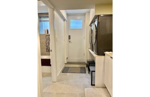 Spacious, 1400 sqft private suite with a separate entry through a beautiful backyard and down 12 steps (with a handrail) to a basement suite. Family friendly as we have a toddler upstairs so you may hear her running around sometimes.