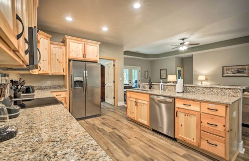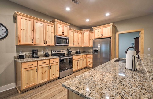 With both lakeside fun and mountain adventures around every corner, this 3-bedroom, 2-bath vacation rental is the perfect Tallassee escape! This recently built cabin sits next to Stone Creek and features a spacious furnished patio, a well-appointed interior, and a fully equipped kitchen. Go for a stroll down the creekside hiking trail or experience the small-town charm with a bite to eat nearby. After a day trip to Montgomery, come back to unwind on the private deck with sweeping forest views!