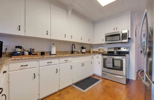 The home also has a washer and dryer. The kitchen is fully stocked, including a drip plus single serve coffee maker, but there is no dishwasher.