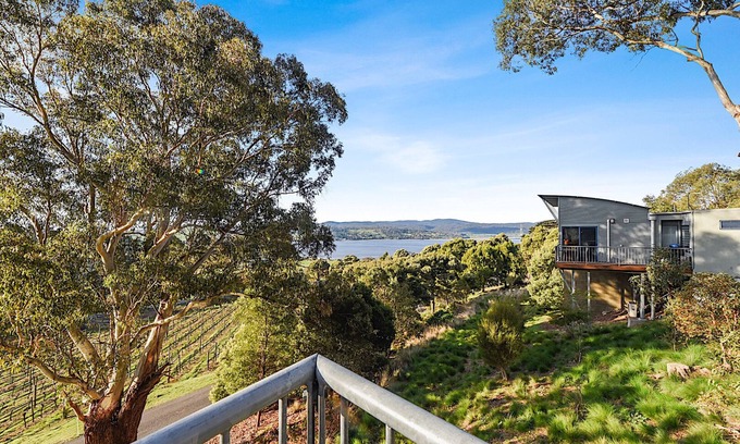 The deck offers the perfect place to start your day or unwind after your travels. Enjoy panoramic views that stretch over the surrounding vineyards and Tamar River.