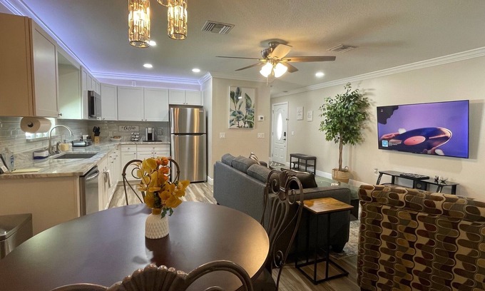Centrally Located within 15 minutes of Raymond James Stadium (Tampa Bay Bucs), Steinbrenner (Yankess) Stadium, Downtown Tampa, USF (University of South Florida), UT (University of Tampa), Ybor City, Busch Gardens, VA hospital, Hard Rock Casino, Lowry Park Zoo, Amalie Arena (Tampa Bay Lightning), Amphitheater, cruise ship terminals, Florida Aquarium, Side Splitters Comedy. The Beaches are within 45 minutes. Restaurants and grocery within 5 minute drive.