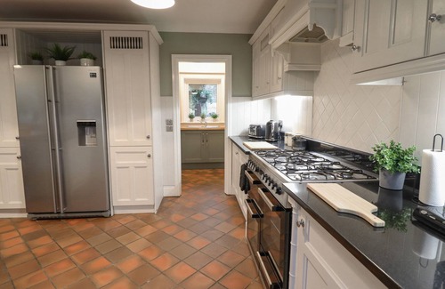 Ground Floor : Super King zip link ( Twin on request) with an En-suite. 1st Floor has Super King/ Twin with En-Suite, Bedroom 3 is a Superking and Bedroom 4 is a Single. Bedrooms 3 and 4 share a Bathroom. On the 2nd Floor is Bedroom 5 ( Super King with En-suite, Bedroom 6 ( Twin room) and Bedroom 7 (King size). Bedrooms 6 and 7 share a bathroom. Bathroom with bath, shower over, basin and WC. Kitchen with oven, hob, microwave, fridge/freezer, dishwasher, dining area, sitting area. first-floor kitchen has range cooker, utility with washing machine and tumble dryer, dining and sitting rooms with Smart TV and woodburner. First-floor snug with Smart TV. Enclosed rear garden with lawn, private lake and furniture, raised decking area with hot tub. Off-road parking for 4 cars. Note, we welcome four well-behaved dogs at £25 each per day. WiFi, fuel, power, bed linen and towels are all inc, sorry no smoking. Note: Property is next to a lake, children/ pets to be supervised at all times. Fishing available on the lake. Check-in 3pm, check-out 11am. Note: Dogs are not allowed on the third-floor carpeted area. Note: Please bring own towels for outdoor use/hot tub. Note: Fake tan is not permitted in the hot tub, the Housekeeping bond will be retained if used, to reimburse extra cleaning cost. Note: No stag/hen parties. Note: the property has a ring doorbell for security purposes.