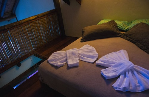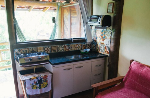 Our duplex chalet has a special charm because they contain a mezzanine and are high, have a view on the balcony that give the impression of a tree house, all our chalets hear the sound of the sea, but the duplex contains a skylight where if it is possible to sleep more clearly with the sound of the waves of the sea and the Atlantic rainforest, the staircase that leads to the mezzanine is easily accessible, but not suitable for people with any limitations,