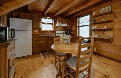 Tanglewood is a charming log cabin with a cozy sleeping loft, wood burning fireplace, private covered front porch, deck with hot tub, and a firepit, all set on a wooded serene hilltop. Spend a lazy afternoon on the porch swing, tend the fire, dine on the deck on a peaceful ravine, or stargaze from the hot tub. Most importantly, relax and enjoy all that Tanglewood has to offer.
