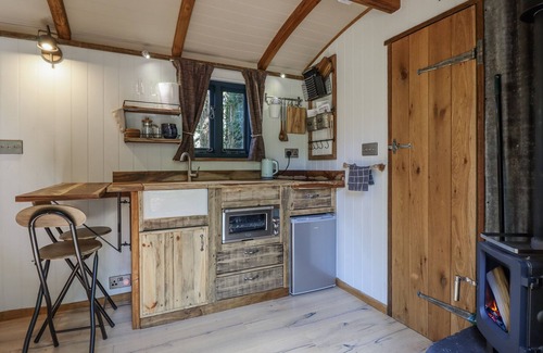 Tanglewood Shepherds Hut consists of a studio-style layout with a double bed, a kitchen with an electric oven, electric hob, fridge with ice box and kettle, a dining area, and a sitting area with a woodburning stove. There is also a shower room with walk-in shower, basin, heated towel rail and WC. Outside, there is a non-enclosed front garden with seating, fire pit and hot tub, along with ample off-road parking. Within 3.2 miles, you will find a shop, and within 1.3 miles, a pub, while the lake lies just 0.3 miles away. Sorry, no pets and no smoking. WiFi, fuel, power, a starter pack for the stove, bed linen and towels are all included in the price. Have a romantic getaway at Tanglewood Shepherds Hut. Note: Steps up to the property, please take care. Please note on same day check in's the hot tub may not be warm until around 8/9pm due to a full clean being taken place on the changeover. Note: There is a good housekeeping bond of GBP150 on this property