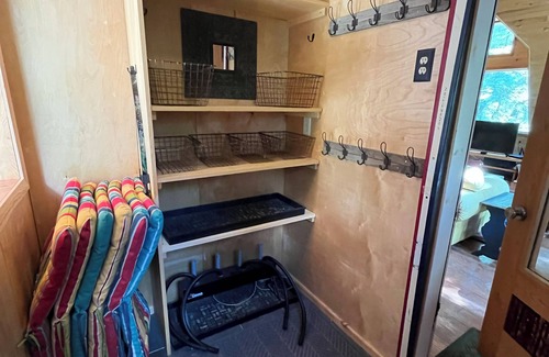 There is parking for one or two thoughtfully parked cars in the driveway but only one way access. 4WD or AWD capability is required in winter to access the Ski Valley and this cabin.