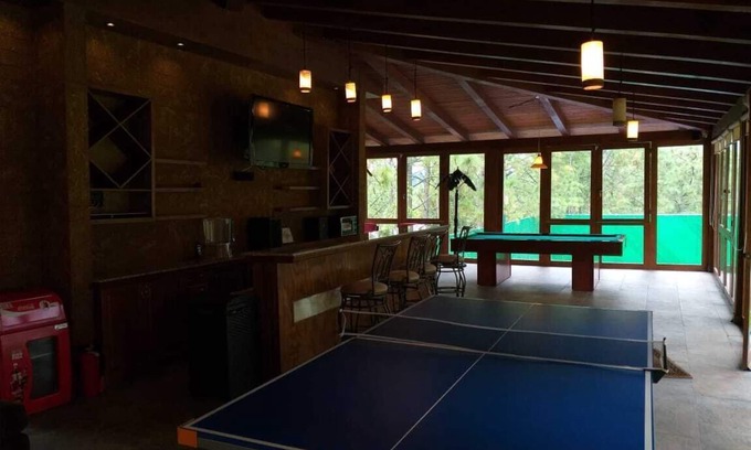 luxurious house in fracc. tapalpa country club with big roofed pool and sauna with a beautiful forest view , a big bar with nice forest view , 1 pooltable with its living room , a pingpong table with another confortable living room and 2 complete bathrooms in the same room The big bar. If you like sports we have a big tennis court and a half basketball court. Inside the house we have another pooltable bar with a tv . if you dont want to go to The Big Bar downstairs there is a little bar inside de house too. be side a nice big terrace where you will find a grill and another little grill too and a wood fire . Inside the house next to the little pool bar we have a nice confortable living room with a chimney beside , the kitchen and the dinning room with forest view and roofed pool view. next to the kitchen we have a hexagonal game table room with a very nice forest view , another complete bathroom and upstairs beside the main entrance we have a very confortable tv room with 3 recliners . Upstairs we have 3 rooms , the Main room with a king size bed whith a balcony with a beautiful lake view with a complete bathroom with a nice jacuzzi with a forestview. The second room has 2 individual beds and another 2 upstair in the same room with forest and pool view and a complete bathroom, nextdoor we have the third room with 2 individual beds, and upstairs we have a sofabed and another individual bed . In the middle of the rooms we have another living room or bedroom ,with 1 sofa bed and other 2 doble sofa bed. For your confort we have maid and an assistant . We are at your service and have a nice stay.