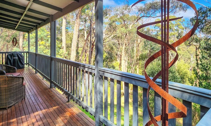 Tarilta is a one-bedroom cottage with lovely views over the surrounding forest. Situated in the most desirable part of Hepburn Springs and at end of a long private driveway through the lightly forested sloping 1-acre site (with two other small cottages at the front end of the site) that adjoins and has direct access to the Hepburn Mineral Springs Reserve, the cottage provides a relaxing and peaceful getaway. The kitchenette contains all the essentials if you want to prepare your own meals, but the Daylesford/Hepburn Springs area has a well-deserved reputation for outstanding cafes and restaurants.