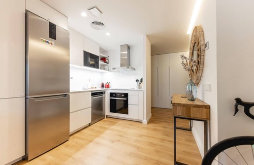 Stay in the heart of Girona in this modern and spacious 2-bedroom apartment on Gran Via Jaume I, just steps from Carrer Nou and the Saba Santa Caterina parking, and only a short walk to the Old Town. Completely renovated in 2022, the apartment combines comfort and style with all modern amenities. The bright living room has a sofa bed, smart TV, fast Wi-Fi, air conditioning and a dining table for 4. The open kitchen is fully equipped with dishwasher, oven, microwave and everything you need to cook at home, plus there is a washing machine, dryer and ironing facilities. Both bedrooms have double beds that can be split into singles, making the apartment perfect for couples, friends or families. The master bedroom has an en suite bathroom with shower, sink and toilet, and there is a second full bathroom with the same comforts. With its central location, this apartment is a great base to explore Girona and enjoy a comfortable and memorable stay.
