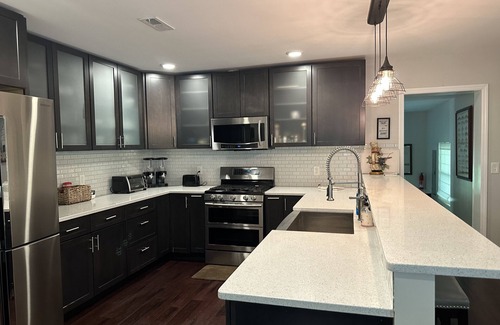 There is a large, fenced back yard for your pets. A pet deposit and cleaning fee (per pet) will be added to the cost of your stay.