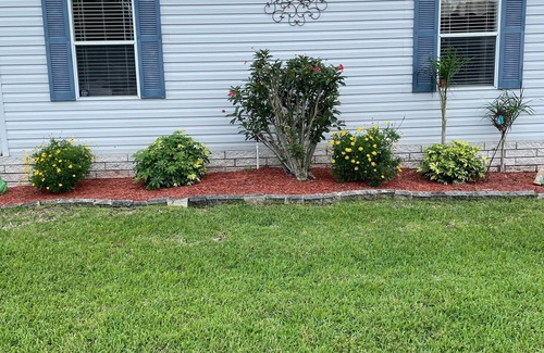 This house comes fully equipped and furnished with 5 new appliances . New living room reclining sofas. Noce master bedroom with en-suite bathroom. Second bedroom and sofa bed in the Florida room for guests or grand kids. Very large kitchen with dining area overlooking the back yard.Beautiful landscaped lawns and stub beds.Your own private driveway carport and attached storage. To top it off you get your own Club Car electric golf cart.
