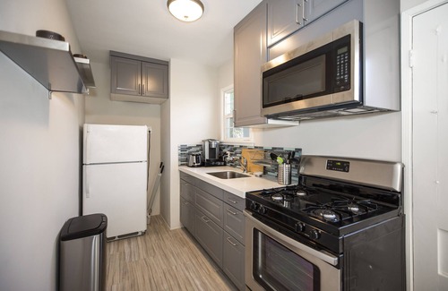 Premier, quiet convenient Burbank location north of Glenoaks just outside the Glendale border. Walkability! This is an adorable sweet studio apartment with its own front and back doors, it’s own dedicated off street parking right next to the cottage, and coin operated washer and dryer shared by 5 others available on the property. Fresh paint, redone hardwood floors, new IKEA kitchen, newly redone bathroom, well chosen furniture, linens, window treatments. Central air and heat. Perfect for long-term single or parent/child as there is a single hide a bed as well as the full bed. Not suitable for two adults. There is a front door and a back door to this charming cottage and a small outside space for sunning. It is on a quiet residential street. While this is a newish short term rental to us, we are experienced short term rental owners, having 2 furnished STRs for the past 25 years in Laguna Beach. We are very conscientious of the needs of our guests and we live nearby and respond quickly should any issues arise.