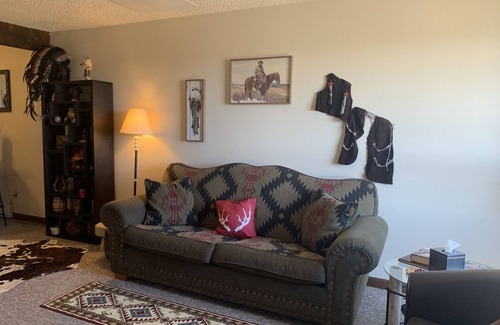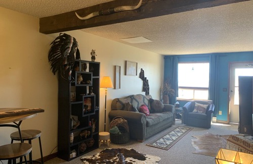 We've added two more beds!!! Tatanka Suite- Sister Unit to the Cabin at Eagles Watch. Come snuggle up next to the fireplace after a long day of snowmobiling, fishing, hunting, hiking, or wildlife viewing. We have a full kitchen, free WIFI, and plenty of parking.