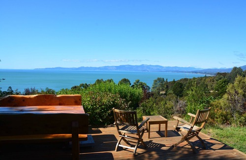 Ao Marama Retreat in Golden Bay, New Zealand is a former Buddhist retreat set amongst 16 acres of Regenerating Native Bush. The retreat is nestled on a hill with sweeping views of the sparkling ocean below.