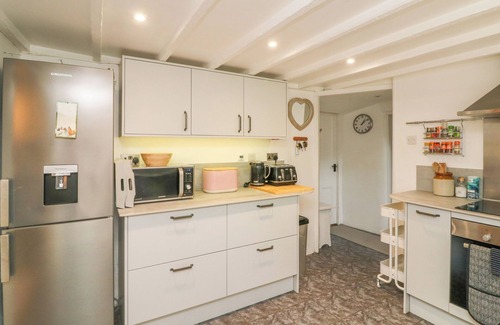 Amenities: Gas central heating. Electric oven and hob, microwave, fridge/freezer, washing machine, dishwasher, kettle, toaster. TV, WiFi, selection of books. Fuel and power inc. in rent. Bed linen and towels inc. in rent. Off-road parking for 2 cars. Enclosed rear garden with patio and seating and covered seating area, and a second enclosed garden with lawn, patio, seating area. One well-behaved pet only. Sorry, no smoking. Shop 1.6 miles, pub and river 0.1 miles. Note: Steps into property. Note: Steps up to second garden. Note: A short break must be a minimum of three nights