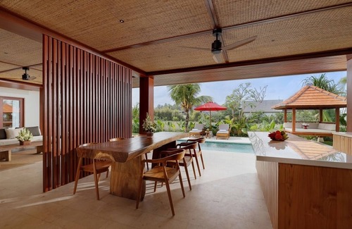 Lies in the serenity of Amarta Beach Retreat in Tabanan, features a comfortable 3-bedroom private pool villa with a tasteful minimalist design and graceful Balinese touch. The Villa boasts spaciousness, its semi-outdoor living area overlooking a glimmering private pool, the village’s lush local vegetation, and tranquil tropical gardens with a gazebo. Fully equipped with a kitchen and en-suite bathrooms, designed to provide peace and privacy, perfect for families and friends gatherings and those seeking a beach holiday and total privacy. Provides easy access to enjoy all of Amarta Beach Retreat’s facilities, the oceanfront infinity pool in which you can enjoy a spectacular view of the ocean, Lilly by The Sea Beachfront Dining to enjoy freshly homemade food and beverages with the island’s freshest ingredients, direct access to the beach, provides curated local experiences with guided walks, village cycling, ATV ride adventure, and complete your day to relax your mind, body, and soul at the Manggar Spa. Enjoy the tranquillity and peacefulness and have a complete journey to enjoy true Bali experiences.