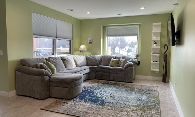 Brand new, spacious two-bedroom condo with two full baths, beautiful balcony deck, centrally located in Traverse City, MI. Location is everything when you are vacationing, and our unit will put you blocks from the beach, the Commons at the Old State Hospital grounds, the TART Trail, and downtown TC - all in easy walking distance. Being on the west side of downtown Traverse City, it's quick and easy to do the M-22 drive and head to the Sleeping Bear Sand Dunes, enjoy outdoor music and food at the Lake Ann Brewery, or visit Suttons Bay, Fishtown (Leland), or any of the numerous wineries, breweries, distilleries, and amazing restaurants in the area. While at home, enjoy the gorgeous granite and butcher-block counters, sink into the new sectional sofa with a comfortable memory-foam sleeper, or enjoy a cocktail on the deck. Great food, great shopping, and fun entertainment. We do have a three night minimum stay, except in our high-demand month of July which requires a six night minimum stay.