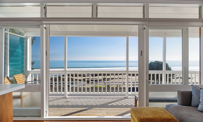 Watch the waves roll in or the tides turn from wild swells to calm blue waters—all from the comfort of your elevated deck. Inside, the open-plan living area flows effortlessly outdoors through sliding doors, framing the endless Pacific horizon—perfect for long, laid-back afternoons with family and friends.