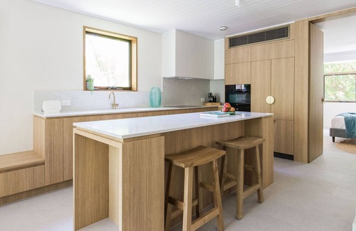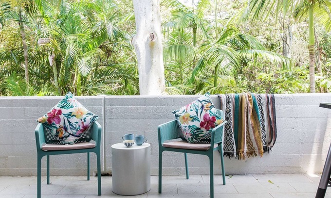 Tea Trees One is a beautiful fully renovated and refurbished two-bedroom, two-bathroom property nestled in Little Cove with a green outlook. Its surrounds are a light, bright, leafy coastal enclave that is close to the world class beaches, restaurants, bars, and shopping of Hastings Street, but far enough away to ensure peace and privacy. It is the best of both worlds, making it ideally suited to family, friends, and small groups.