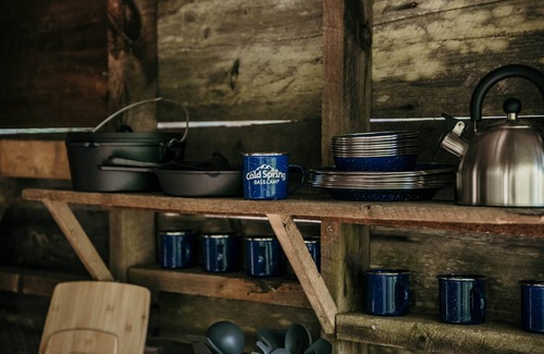 Water- Water is provided from the creek, next to the cabin. We have a bucket for collecting the water and the water is run through a water filter, ensuring clean water for drinking, cooking, and washing.