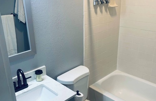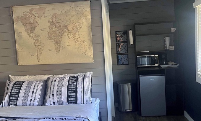 A cozy room that sleeps 1-2 guests with 1 double bed with clean sheets and a lightweight comforter. The room is stocked with essentials for coffee, mini fridge/freezer, microwave and extra shelves for storage. The private bathroom is stocked with toiletries and has a full shower w/bath tub. Enjoy your own AC/heating unit to adjust the temperature of your room to your liking. Tune into your favorite show or sports game on a flat screen TV and free WIFI for all streaming devices and accounts.