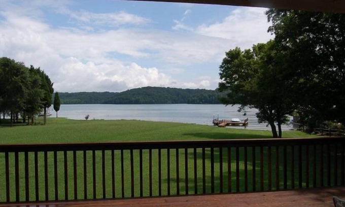 Lake front, four bedroom, 2 1/2 baths, with large furnished kitchen, dining room, living room, 2 car garage, large deck over looking the large back yard and scenic Tellico Lake and dock.
