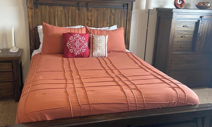 Stay comfortably in Vernal at this 6-bedroom family friendly duplex. These are 2 separate units attached to one another. This superb property boasts 2 queen beds, 2 full beds, 2 bunk beds, and 2 twin beds, perfect for larger groups of guests. There are 4 bathrooms. Each unit has one large and one small bathroom. The small bathrooms include a small shower, toilet and Unit 1 has a small sink. The large bathrooms have a tub/shower combo with a deep soaker tub. Everyone can freshen up easily. Enjoy the tranquil surroundings in our fenced backyards each with a grill and fantastic amenities like WiFi, AC, and a washing machine. Make your holiday one for the books with a stay at our place.