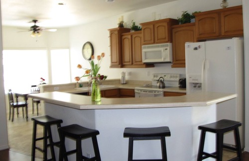Location...Location...Location!!! 1600 square foot 3 bed/2 bath rambler sleeps 6, 3 queen sized beds, and even a pack and play (porta-crib) for your little one, gives everyone plenty of room to spread out. Our home has an open floor plan with 4 flat screen TV's (60",44", 23" and 18') the 60" has a DVR and VHS and extended channels and the guest rooms have built in DVD player. The backyard has Malibu lights and tropical landscape. This includes a natural gas BBQ, patio furniture (table & chairs and 2 chaise lounges). There are games, puzzles, internet connection to enjoy or just peace and quiet--we've got it all.