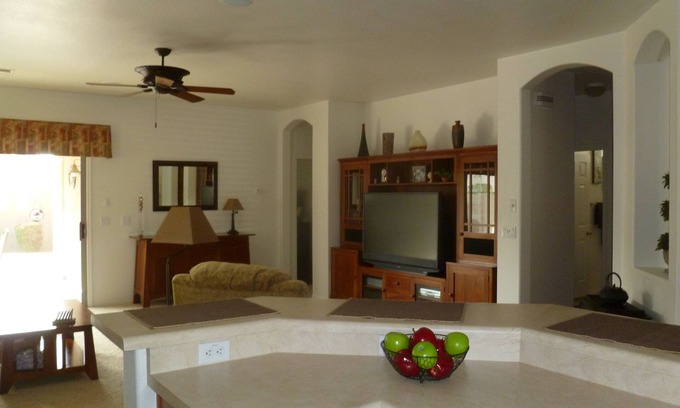 Surprise Stadium, home of the Texas Rangers and Kansas City Royals is a short 1/2 mile from your home away from home, as is Surprise Tennis and Racquet Ball Complex, Pickle Ball courts and the Dream Catcher Ball Park. The Rainbow Play Park and Urban Fishing is right next to the Library and across from the ball field. The Ottawa University is located right behind the Dream Catcher Ball Park. The Peoria Sports Complex, Chase Baseball Field, Goodyear Stadium, Glendale Arena, Westgate, Suns Basketball Arena, Cardinal Football Stadium, NASCAR PIR, and Luke Air Force base are only a short drive away. For the golf enthusiast there are dozens of local courses and hundreds around us. Live theater, the zoo, hiking trails, fishing, movies, bowling, restaurants, shopping, urgent cares, hospitals and much, much more are all in or near surprise.