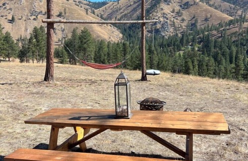Tent #2 is a 12x14 canvas tent featuring a comfortable king bed complete with linen, and cozy woodstove with free firewood. Wi-fi is free, and tent has one power strip inside for electronics. Guests have access to nearby potable water and a communal composting toilet. Patio chairs, propane barbecue, and a communal picnic table are at the campsite for your enjoyment. Come enjoy the beautiful Bitterroot Forest in all its splendor!