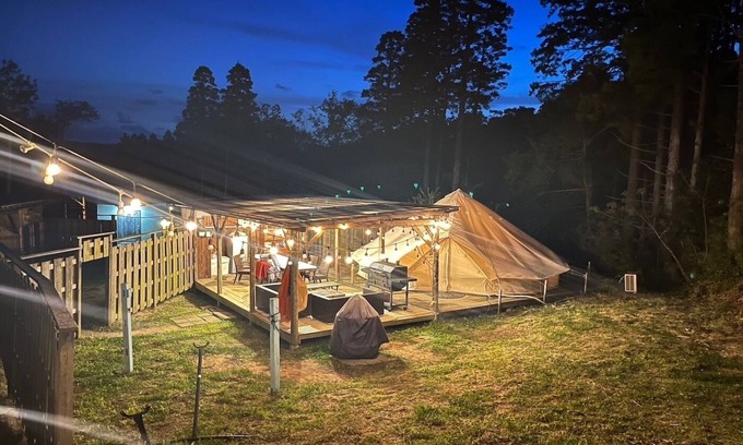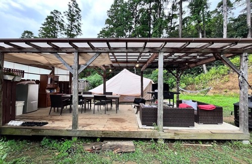 This facility offers a private space for only 5 groups per day Guests can enjoy outdoor experiences such as staying in large tents or cottages and having an outdoor BBQ All buildings are fully airconditioned so you can spend your time comfortably while being surrounded by nature In addition to facilities such as a private kitchen shower room and toilet charcoal grills and fire pits for authentic American BBQ are available for free use In addition the outdoor pool on the facility is available to all guests so you can enjoy a resort atmosphere in the summer season The facility is close to scenic spots that change with the seasons such as Otaki Castle and Yoro Valley and has good access to seaside spots such as Katsuura and Onjuku so you can enjoy a luxurious outdoor experience that combines sightseeing and activities / This is a glamping style facility