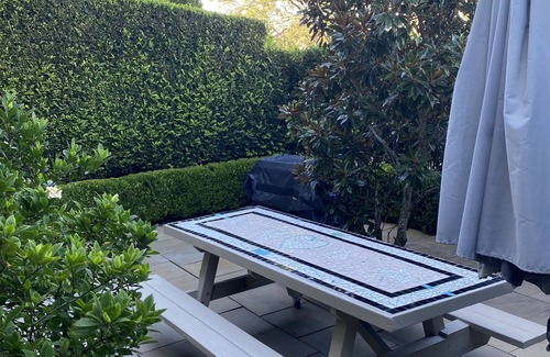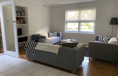 Happy holidays in a 2 bedroom, roomy apartment in the heart of the village. A shell's toss to beautiful Pittwater. One Queen bed, One Double bed with crispy white linen. Fabulous bathroom with L'Occitane products and fluffy towels. Ceiling fans keep you cool and comfy! Gorgeous patio, barbeque, mosaic picnic table and big umbrella to while away the afternoon or sit with the paper and your morning coffee.