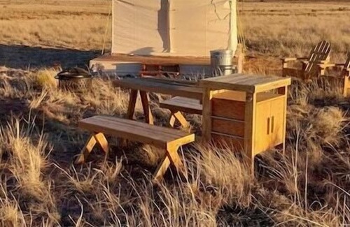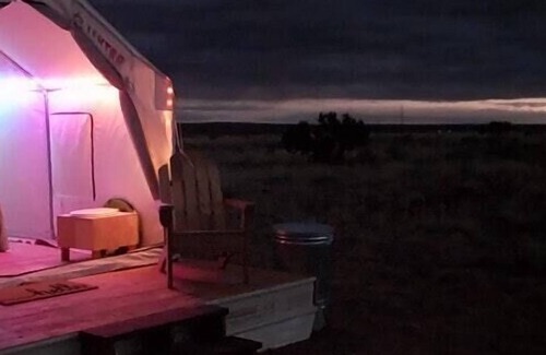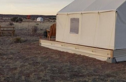 Welcome to your second home. Only 15 minutes from the Petrified National Forest. Enjoy the breathtaking scenery of the large open sky. Onsite you'll have an attentive camp keeper to address all of your needs. Serenity will have you wanting more and never wanting to leave. Arizona has some of the darkest skies on the planet. Bask under the dazzling star lit sky. Plan your visit around celestial events. Inside your home away from home you'll find a comfortable queen size bed. 5 gallons of fresh water with dispenser. A propane heater. Fairy lights to illuminate the indoors. And of course a convient loo.
