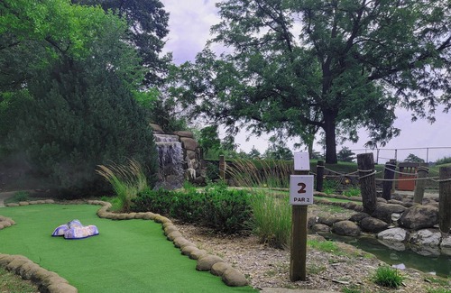 The nearest parking lot and restroom facilities are only a short distance away, as are the Canteen where ice cream and other treats are available and swimming lake.